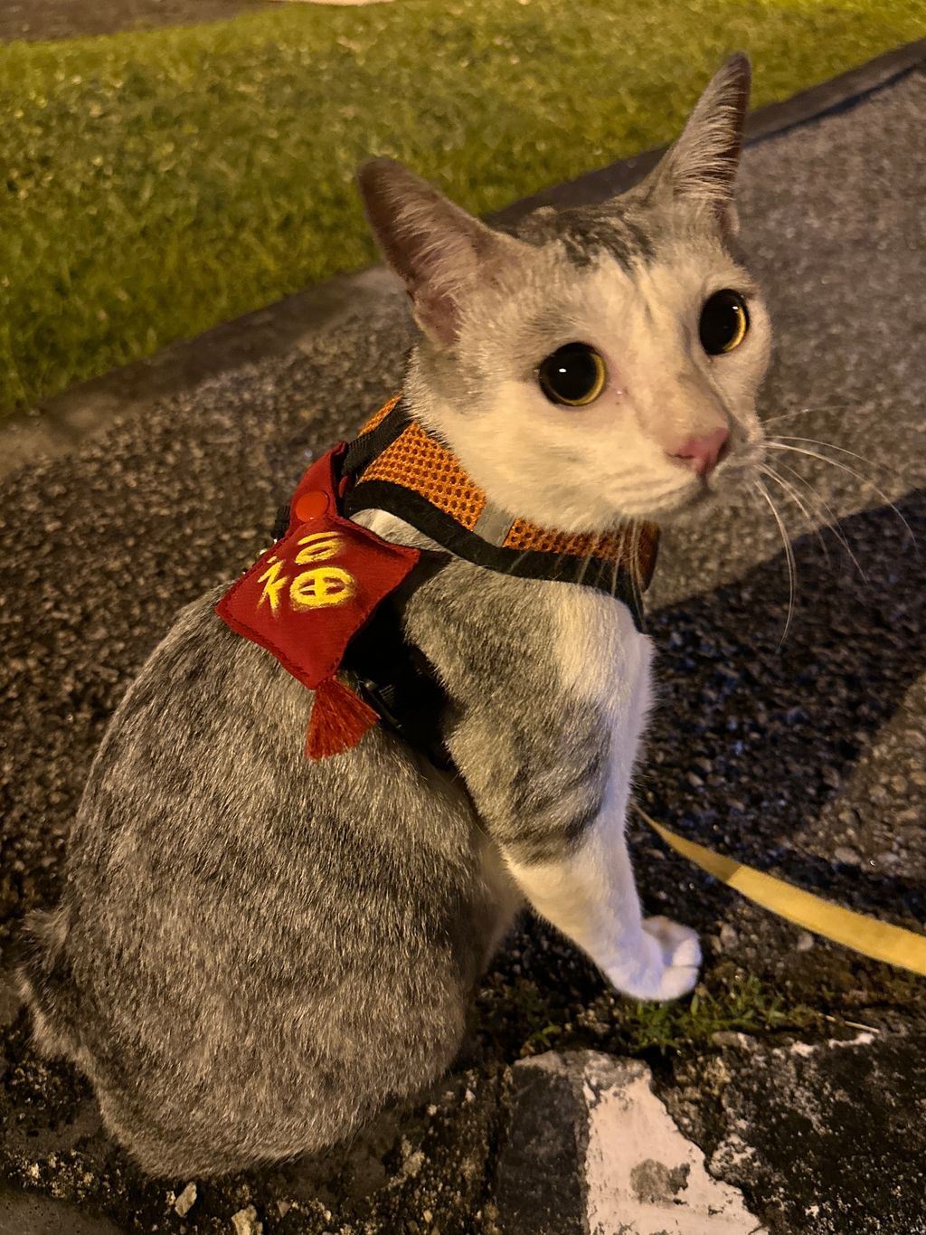 Cute and funny decoration on harness, collar and bag.